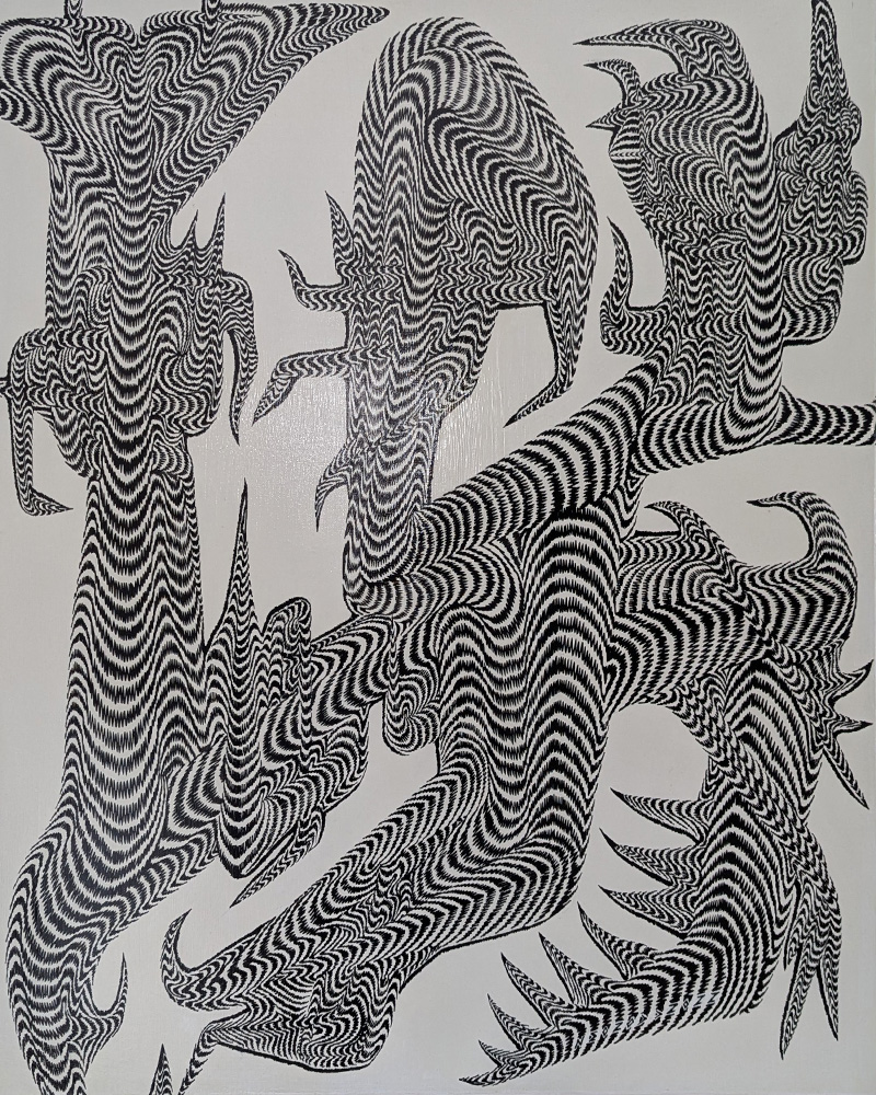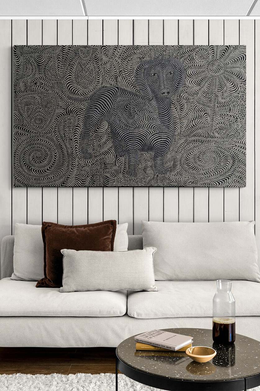 I love the perfection of the geometrical shapes and the way colors vibrate. it completely transformed my bed room, and the fact that it was a costume made painting with all my family on it, makes it more special to me and my husband.